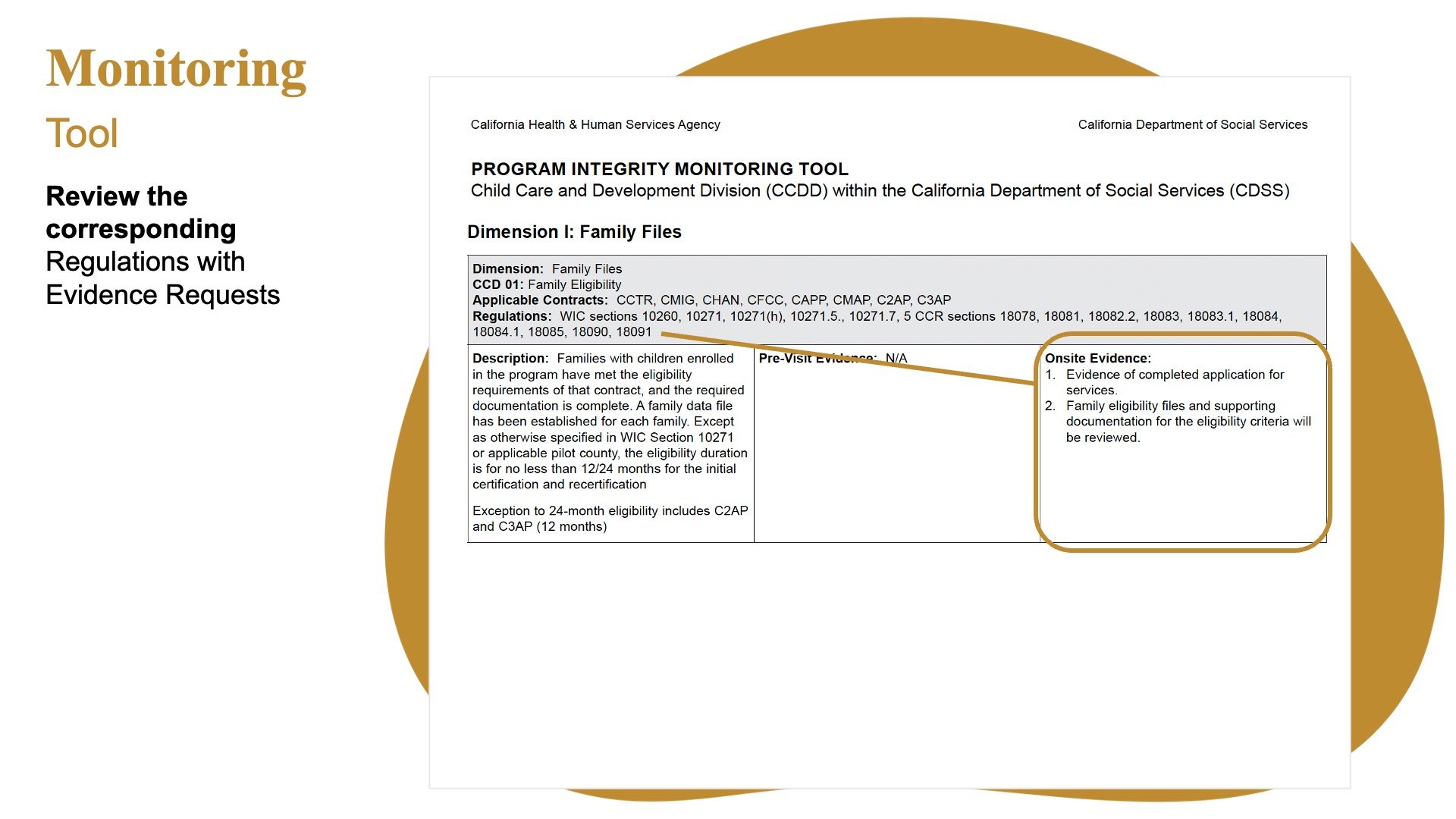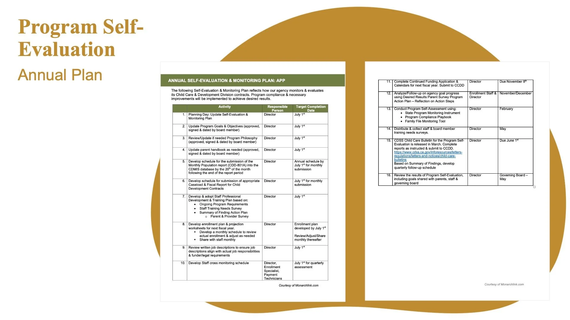 NOTE: The Program Instrument is the same tool used for both the annual self-evaluation & by CDSS when it’s time to conduct your state program monitoring review.