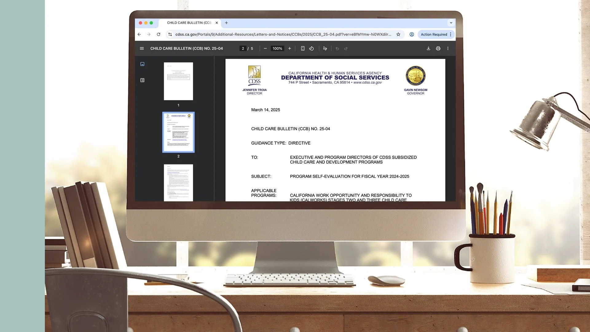 Around March every program year, a Child Care Bulletin is released with instructions & timelines for the program self evaluation report submittal.