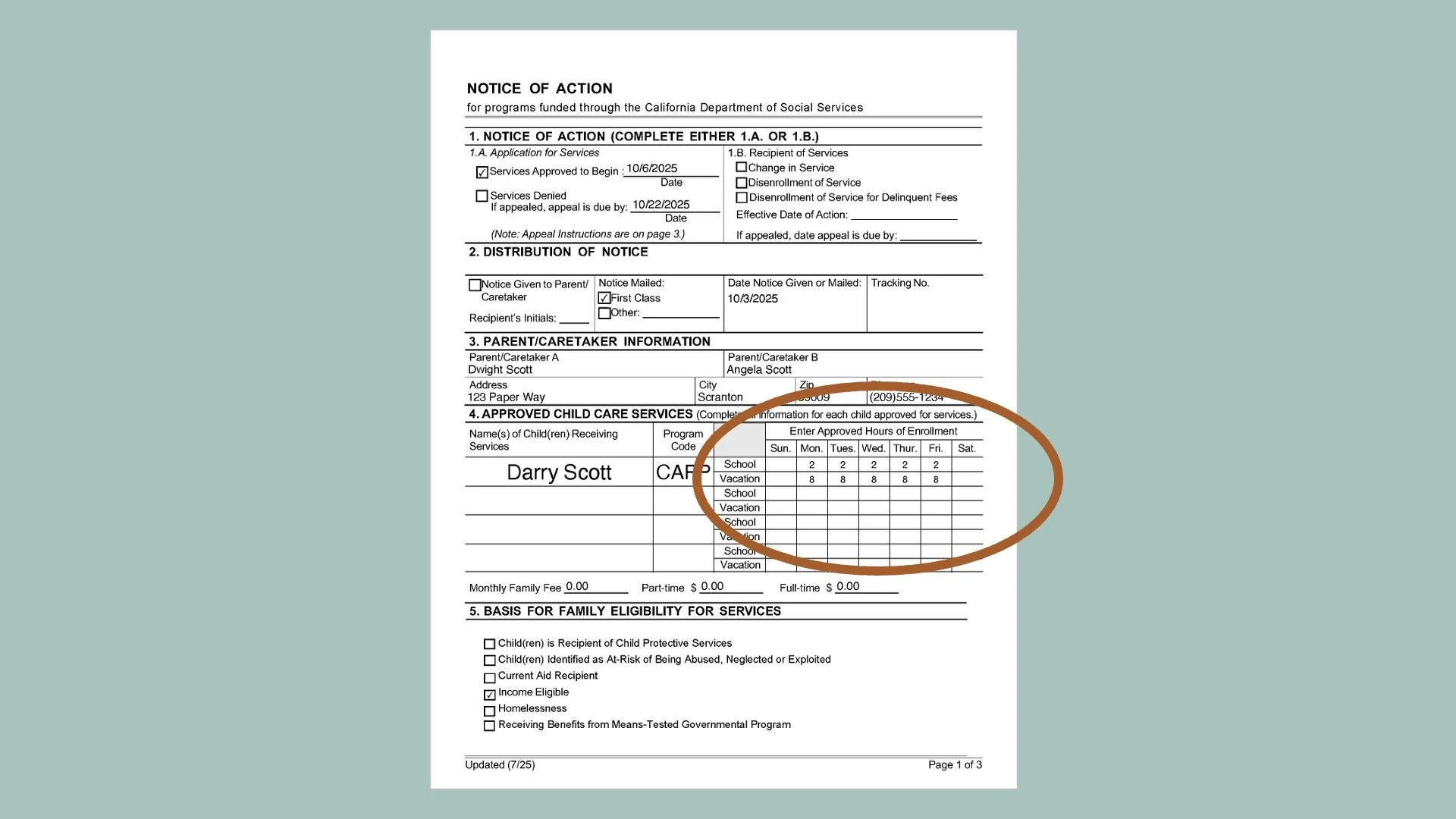 Certified need for child care: Depending on the parent’s certified hours, determine if hourly, weekly or monthly would be the most appropriate