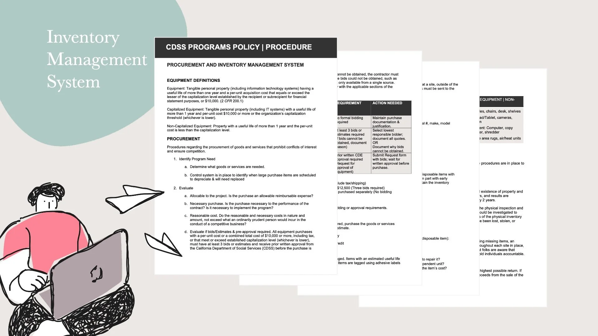 Below is a snapshot of a SAMPLE Inventory Management System that is broken down into 4 categories: Procurement, Recordkeeping, Monitoring & Maintenance, and Inventory Updates.