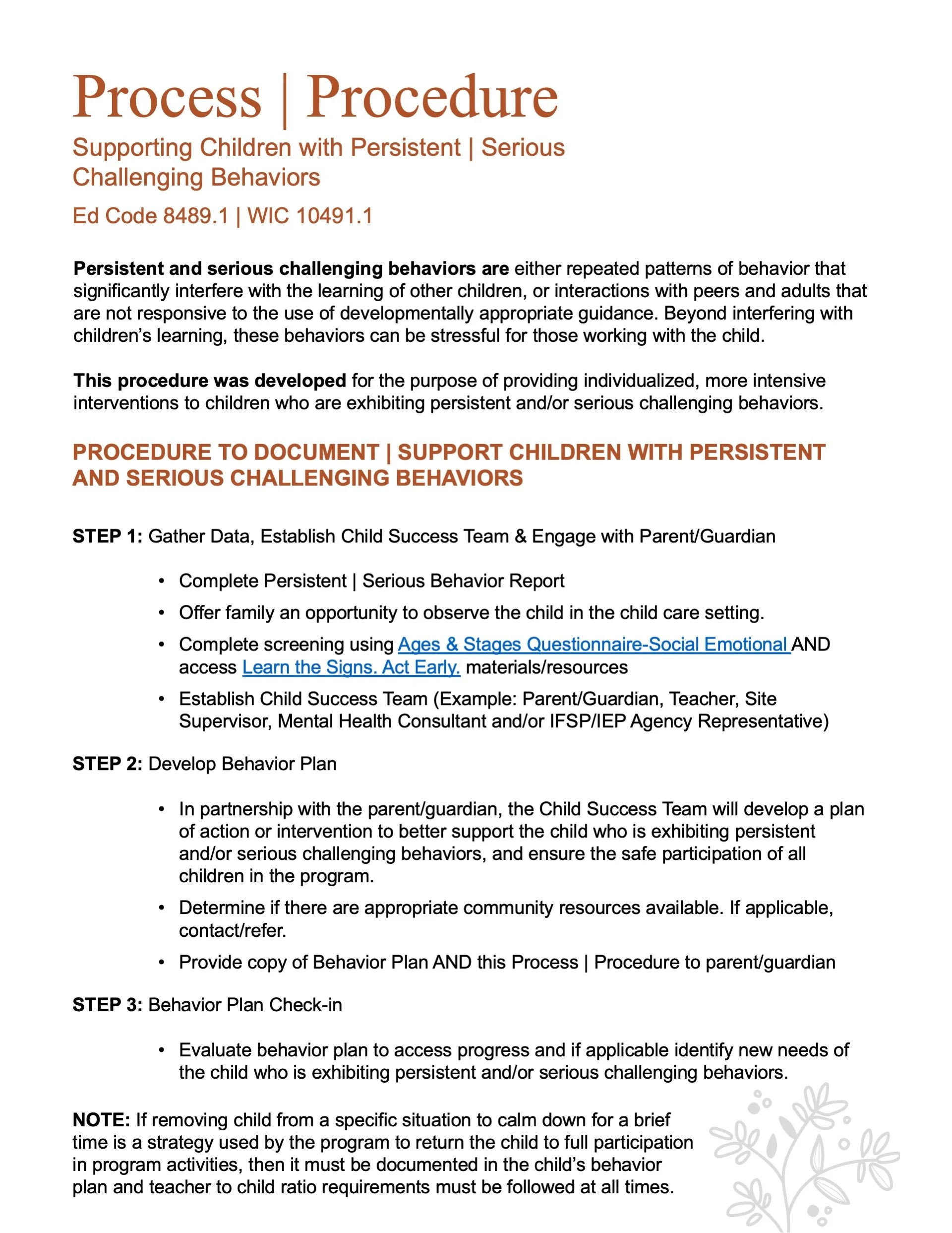 STEP 1: Complete the Supporting Children with Persistent | Serious Challenging Behaviors AND Child Suspension Procedures that includes: