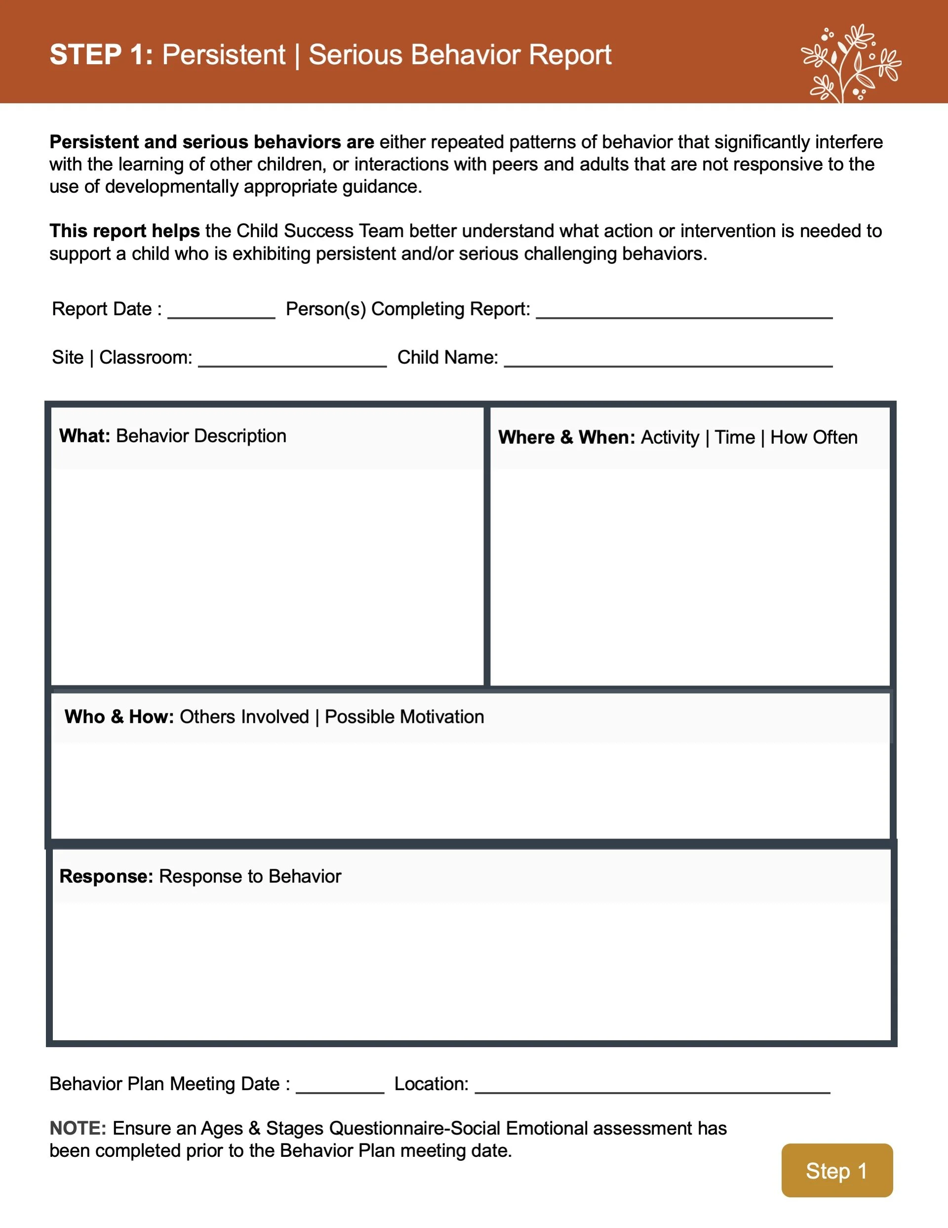 STEP 1: Complete the Supporting Children with Persistent | Serious Challenging Behaviors Procedure that includes: