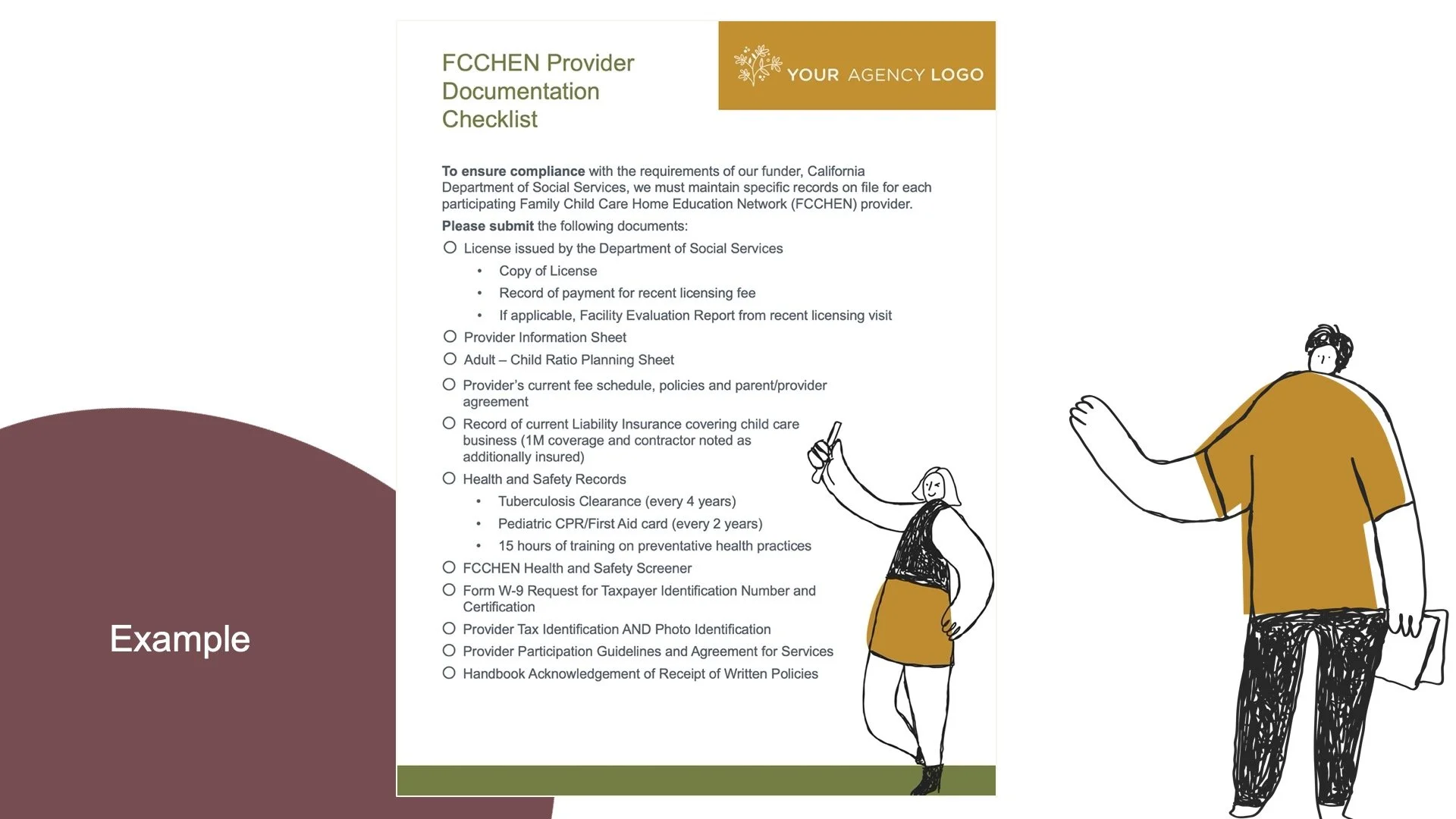 Contractors providing services through FCCHEN providers must maintain the following records concerning licensed service providers: