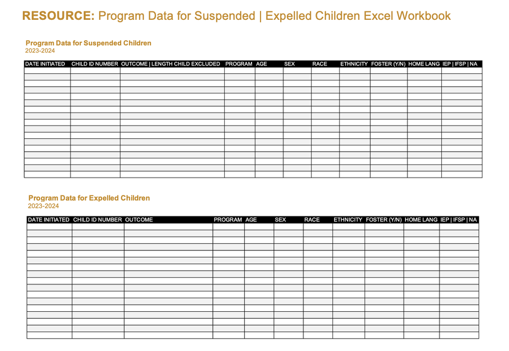 A contractor must maintain records for child suspension/expulsion that contain all the following information: