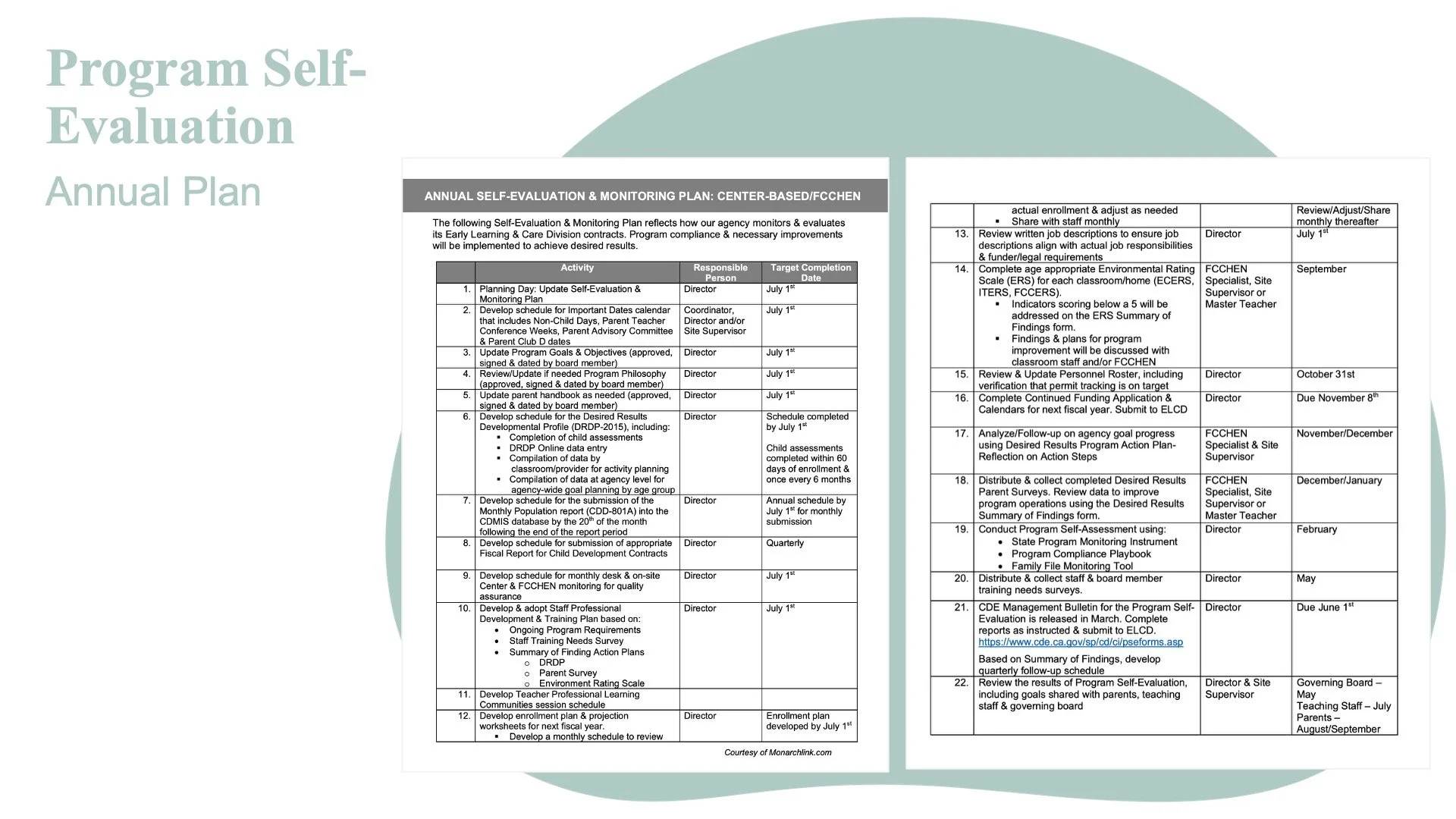 Around March of every program year, a Management Bulletin is released with instructions & timelines for the program self evaluation report submittal. Information & forms may be found on the department’s website at anytime.