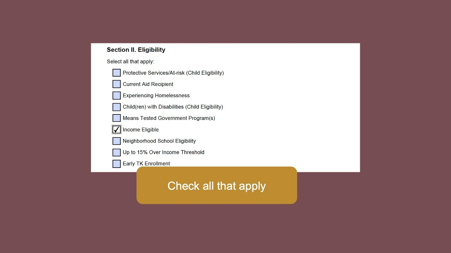 Family eligibility status. Check all eligibility categories for which the family qualifies.